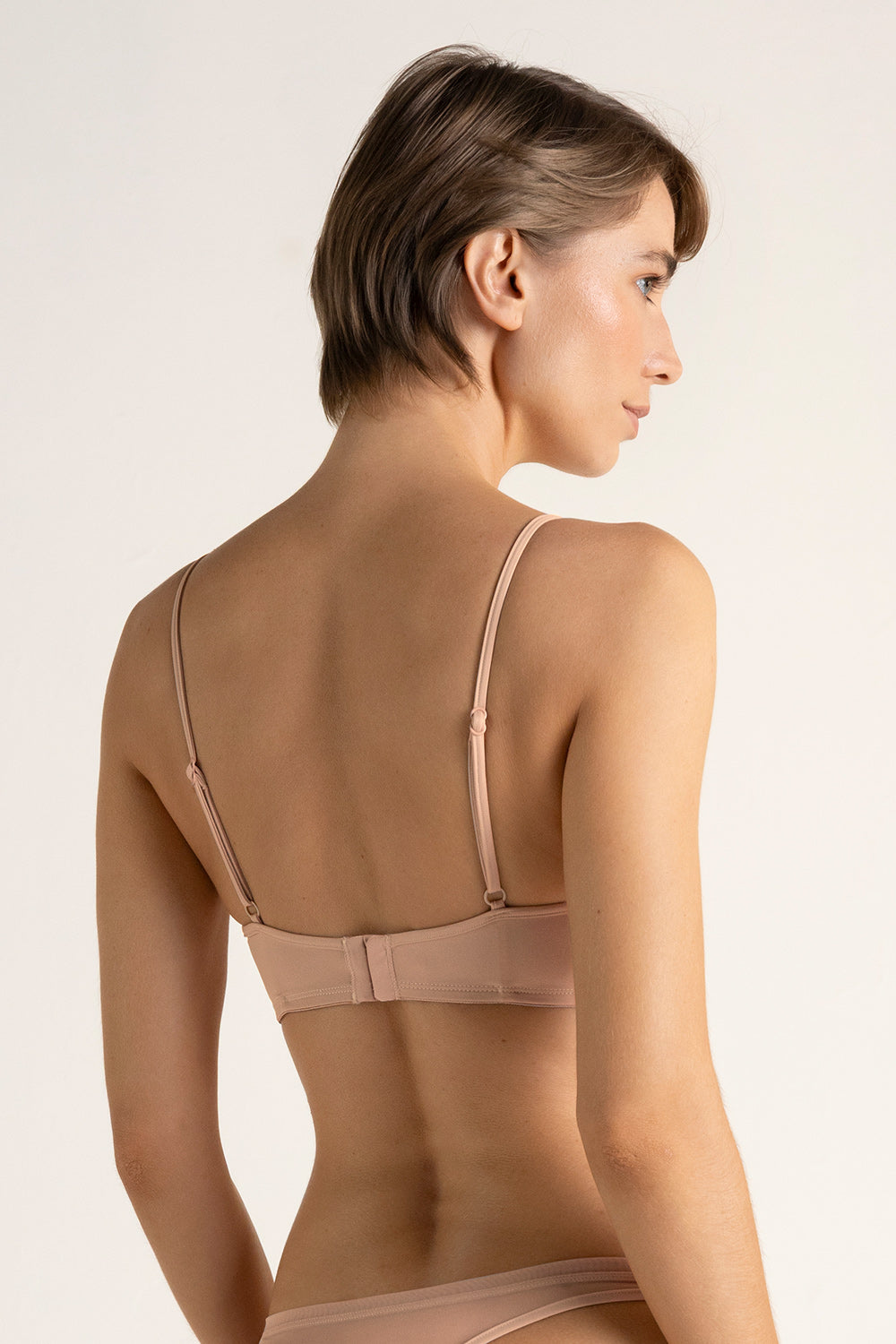 Sostén clásico con aro y sin copa de espuma, elaborado en microfibra y tul, copas dobles para mayor soporte, cargaderas ajustables y abrochadura en espalda. Color palo de rosa, Ref. 2407R61