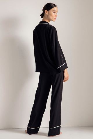Pijama pantalón, camisa manga larga, Color Negro