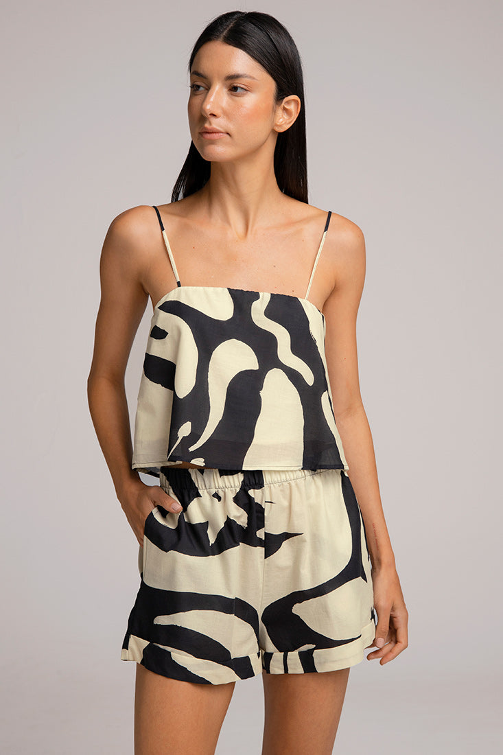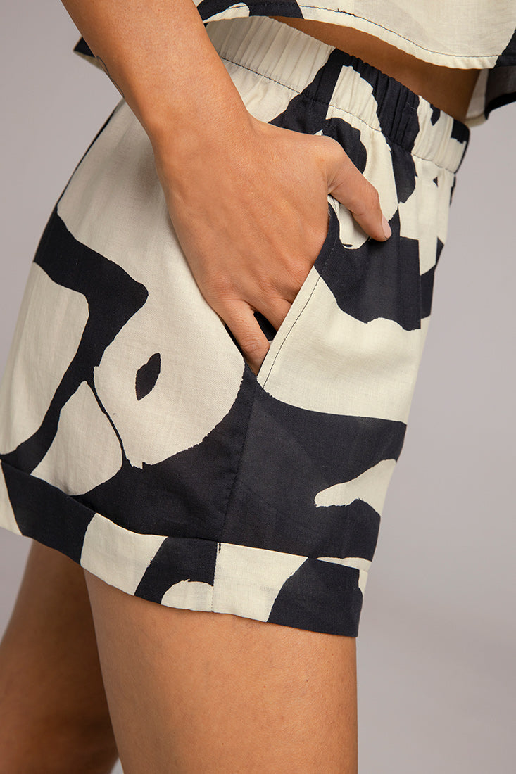 Shorts con cintura elástica y bajo rodado. Color Negro/Marfil, Ref. 0A86051