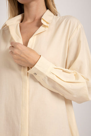 Camisa clásica con botones ocultos y pliegues en mangas Color Marfil, Ref. 0A74M42